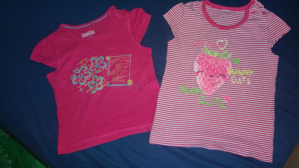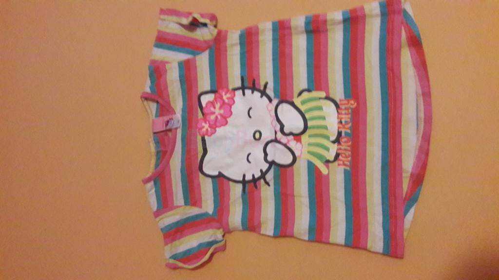Predám 3 tričká s krátkym rukávom, veľk. 86 - 92. Nosené, no vo výbornom stave. Ružové je z Lidla-1,50e, pásikavé z Tesca-1,50e a tretie Hello Kitty-2,50e. Cena spolu: 4e.